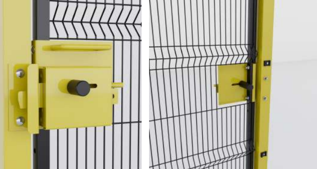 Útil para puerta batiente y corredera. Porta candados / etiqueta mantención. Pasador con sistema de resorte Manilla de seguridad para rápida apertura desde el interior.
